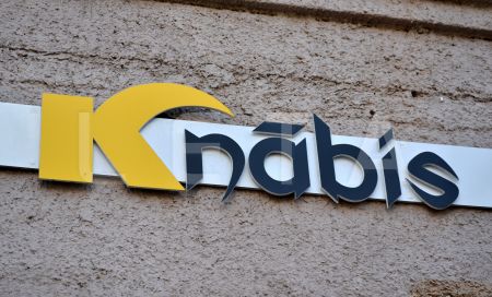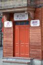 Kafejnīcas ''Knābis'' uzraksts Vārnu ielā.