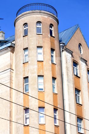 Ēka Pērnavas un Vārnu ielas krustojumā.
