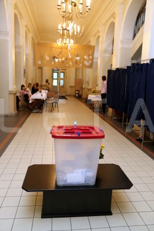 Eiropas Parlamenta vēlēšanu urna 3.vēlēšanu iecirknī Rīgas Valsts ...