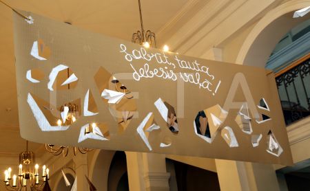 Plakāts ar uzrakstu "Labrīt, tauta, debesis vaļā!" Eiropas Parlamenta ...