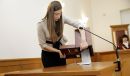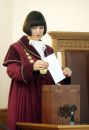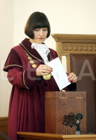 Tiesa sekretāre atver urnu Satversmes tiesas priekšsēdētāja vēlēšanās.