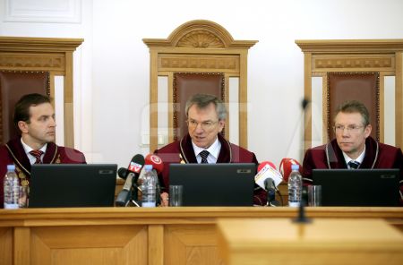 Satversmes tiesas (ST) tiesneši - Aldis Laviņš (no kreisās), tiesas ...