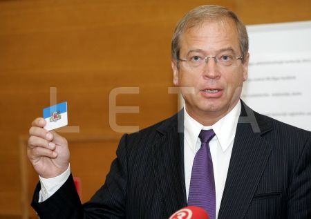 Rīgas domes priekšsēdētāja rokas ar "Rīdzinieka karti" preses ...