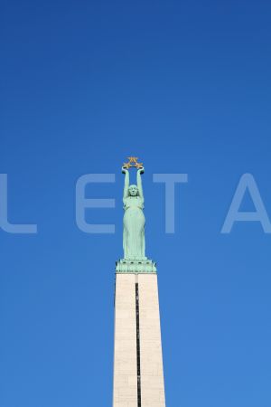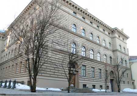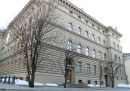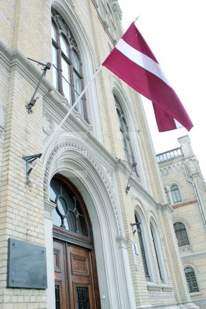 Valsts karogs pie Latvijas Universitātes ēkas.