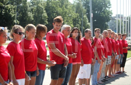 Olimpiskās komitejas prezidents Aldons Vrubļevskis uzrunā jaunos ...