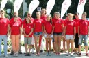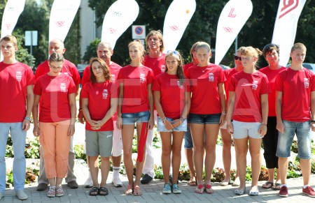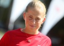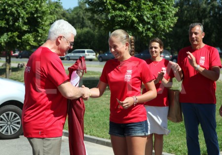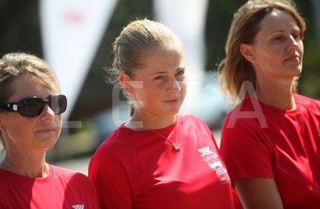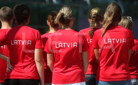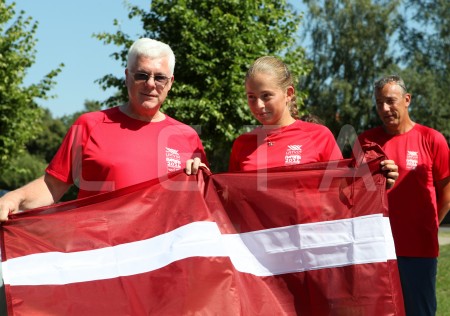 Tenisiste Aļona Ostapenko (centrā), kura nesīs Latvijas karogu ...