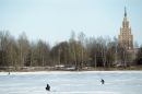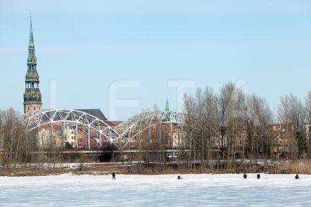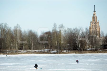 Zemledus makšķernieki uz Bieķengrāvja ledus.