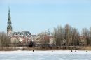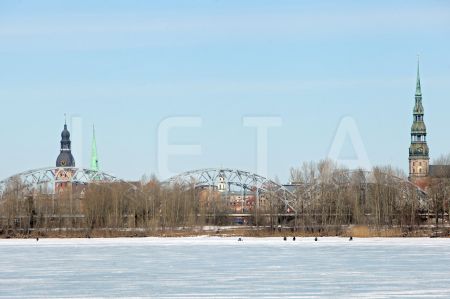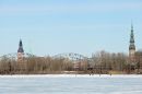 Skats uz aizsalašu Bieķengrāvi un Vecrīgu.