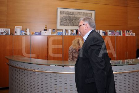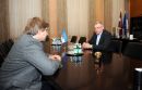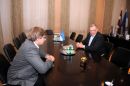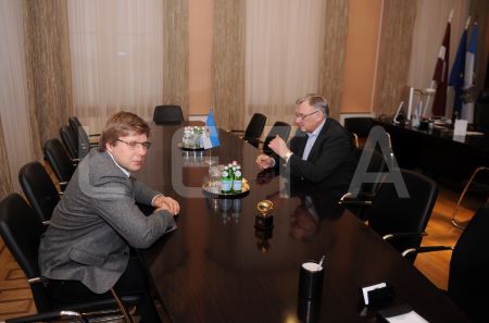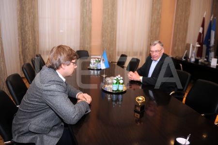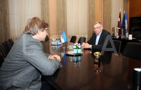 Rīgas domes priekšsēdētājs Nils Ušakovs (no kriesās) tiekas ar AS ...