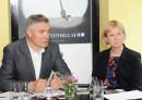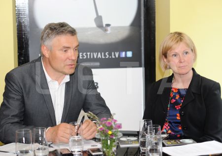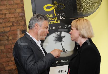 Festivāla rīkotājs Juris Žagars un kultūras ministre Žaneta ...