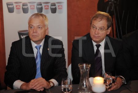 Liepājas pilsētas domes priekšsēdētājs Uldis Sesks (no kreisās) un ...