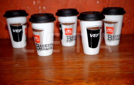 Kafijas krūzītes "Re&Re" rīkotajās basketbola brokastīs, kurās ...