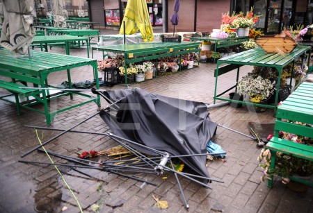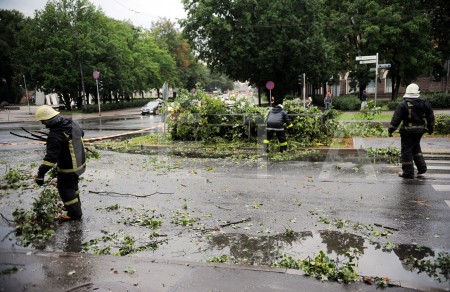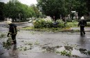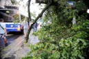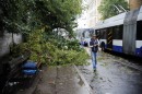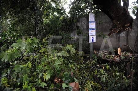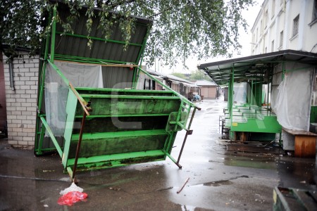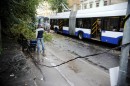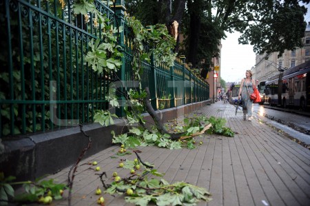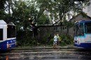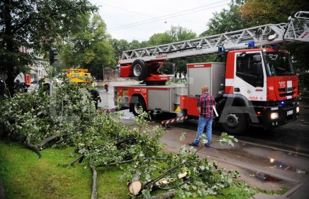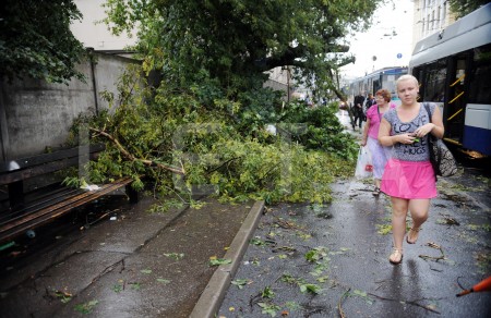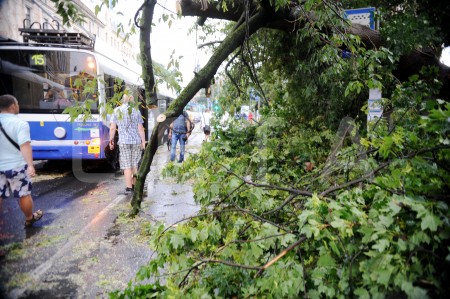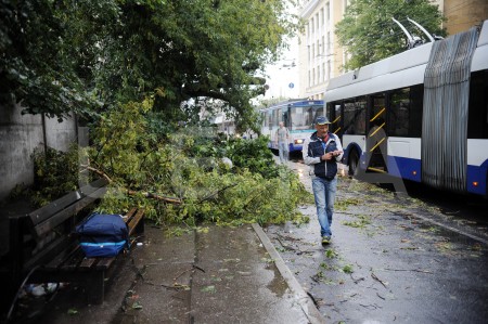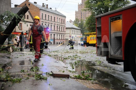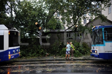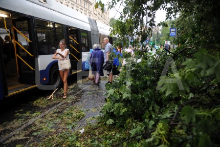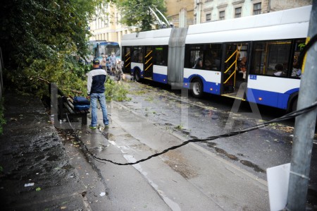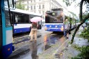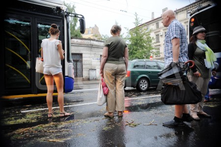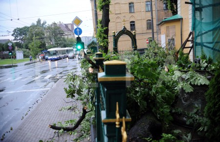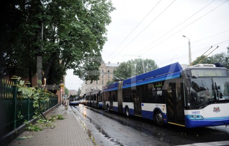 Sabiedriskā transporta pietura Gogoļa ielā un negaisa laikā nolauztie ...