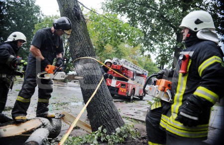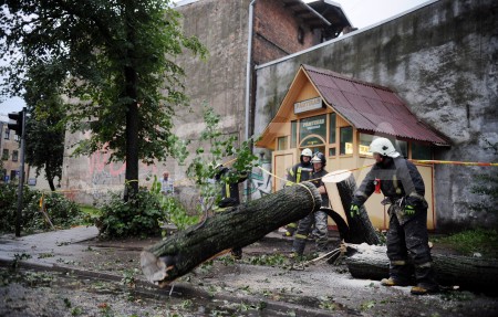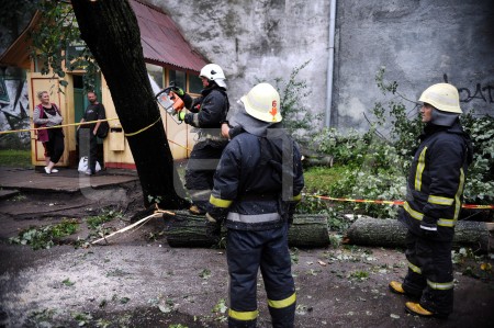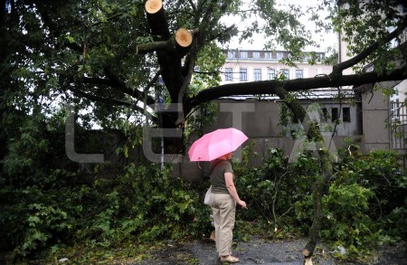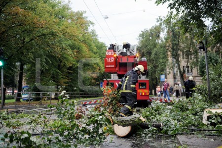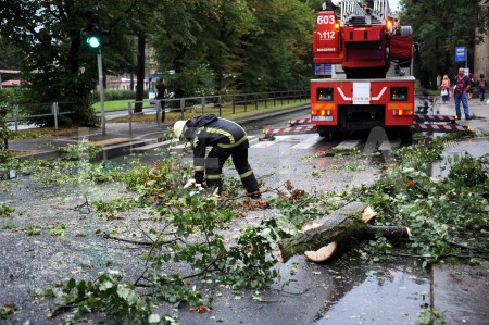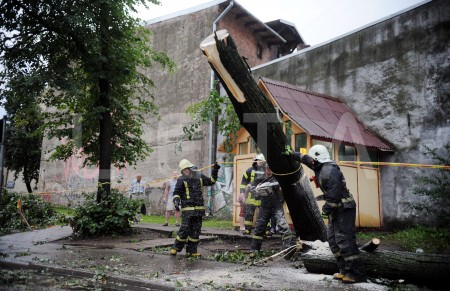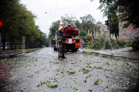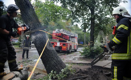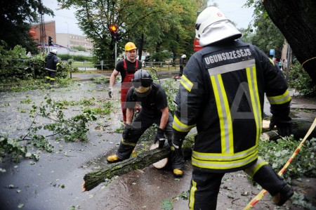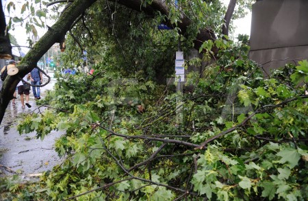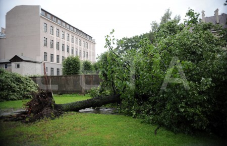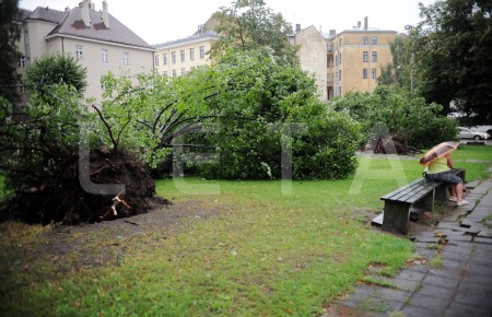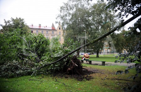 Negaisa laikā nolauzti koki skvērā pie Latvijas Zinātņu akadēmijas.