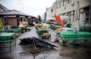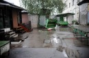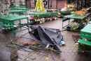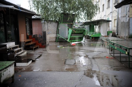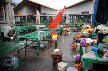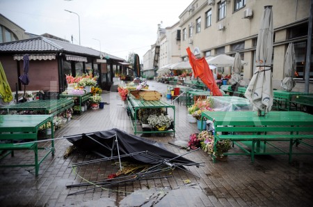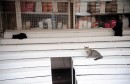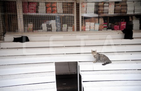 Kaķi Rīgas Centrāltirgū pēc negaisa.