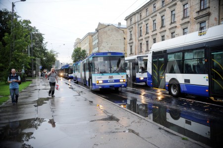Sastrēgums Gogoļa ielā pēc negaisa.