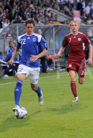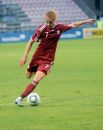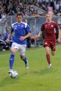 Latvijas futbola izlases spēlētājs Ivans Lukjanovs (nr.7, sarkans) ...