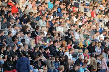 Skatītāji pārbaudes spēlē futbolā, kurā tiekas Latvijas un Somijas ...