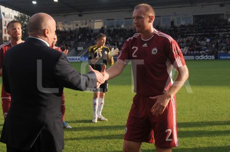 Latvijas futbola izlases spēlētāji Igors Stepanovs (no kreisās), ...