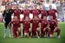 Latvijas futbola izlases spēlētāji Aleksandrs Cauņa (nr.8, sarkans), ...