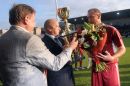 Latvijas Futbola federācijas ģenerālsekretārs Jānis Mežeckis (centrā) ...
