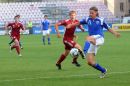 Latvijas futbola izlases spēlētājs Jurijs Žigajevs (nr.10, sarkans) ...
