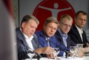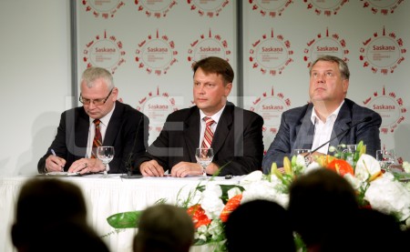 Saeimas deputāti Jānis Urbanovičs (no kreisās), Rīgas mērs Nils ...