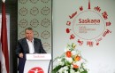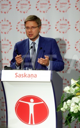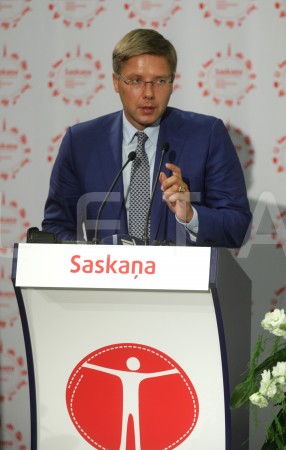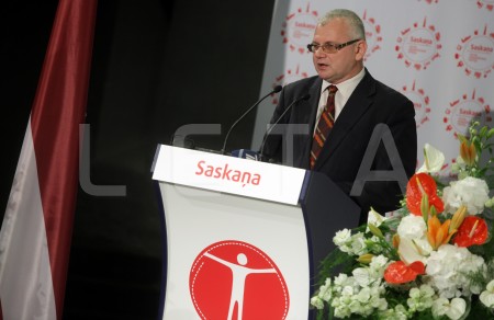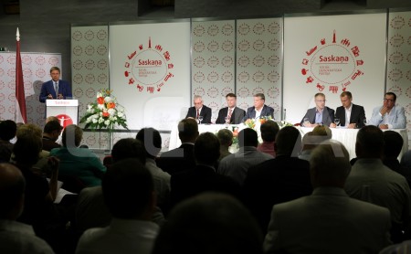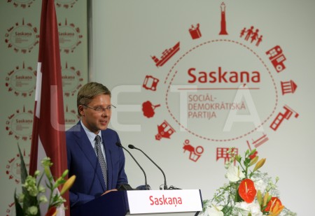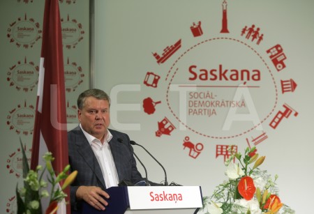 Rīgas mērs Nils Ušakovs uzrunā klātesošos sociāldemokrātiskās ...