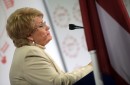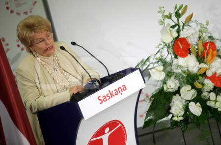 Rīgas domes deputāte Eiženija Aldermane uzrunā klātesošos ...