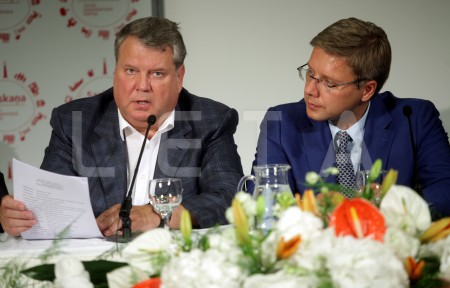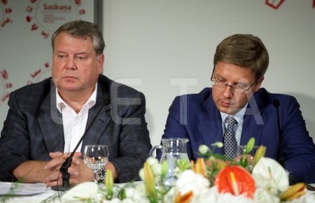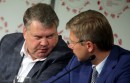 Saeimas deputāti Jānis Urbanovičs (no kreisās) un Rīgas mērs Nils ...