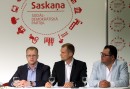 Saeimas deputāti Valērijs Agešins (no kreisās), Jānis Urbanovičs un ...