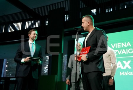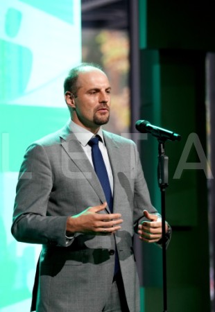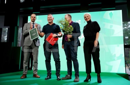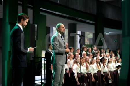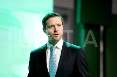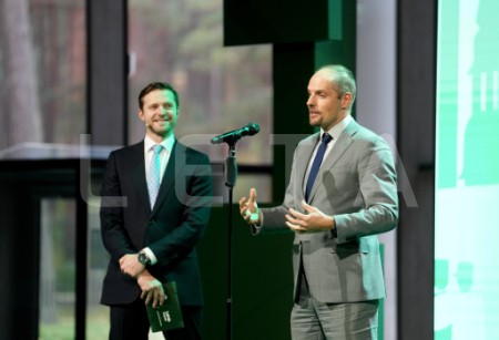 Pasākuma vadītājs, aktieris Dainis Grūbe (no kreisās) un Ekonomikas ...