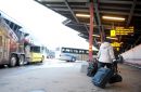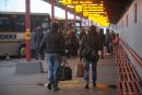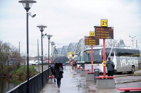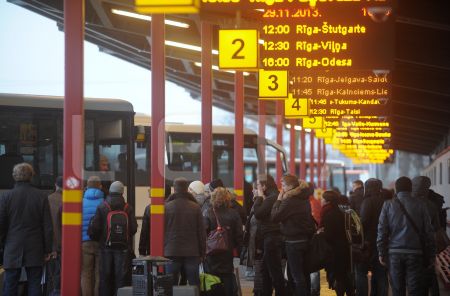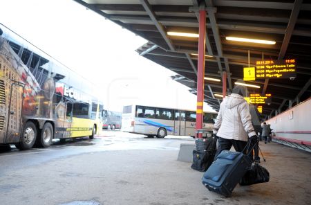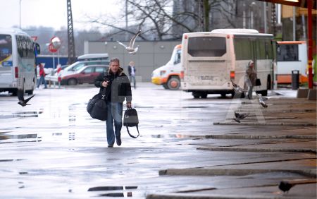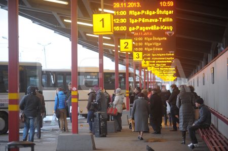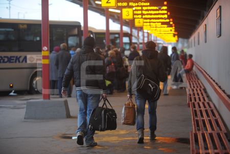 Cilvēki Rīgas Starptautiskajā autoostā.