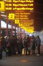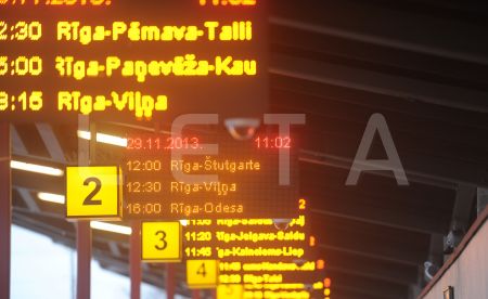Tablo ar autobusu attiešanas laikiem Rīgas Starptautiskajā autoostā.