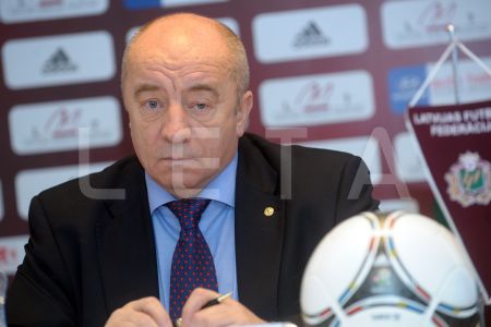 Latvijas Futbola federācijas ģenerālsekretārs Jānis Mežeckis piedalās ...