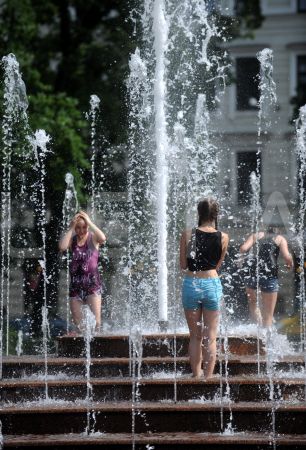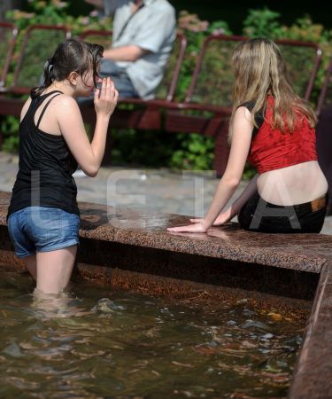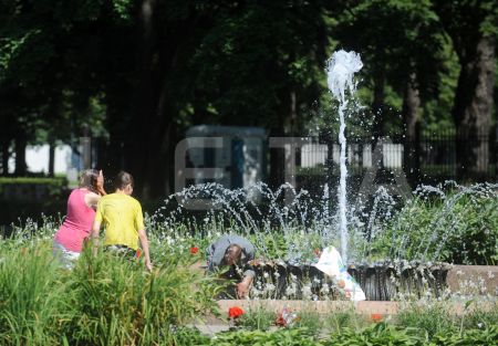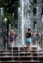 Jaunietes atvēsinās strūklakā pie Kongresu nama karstajā vasaras ...