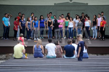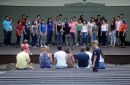 Pasaules koru olimpiādes 2014 dalībnieki mēģina Vērmanes dārzā.
