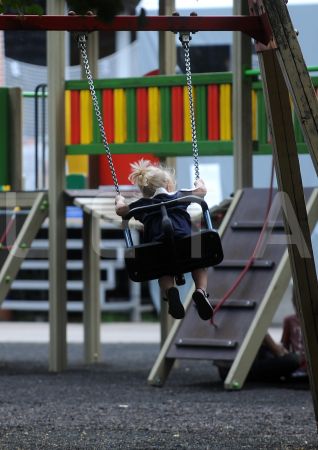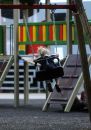 Meitenīte šūpojas Vērmanes dārzā karstajā vasaras dienā.
