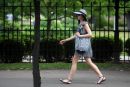 Tūristi Kronvalda parkā karstajā vasaras dienā.