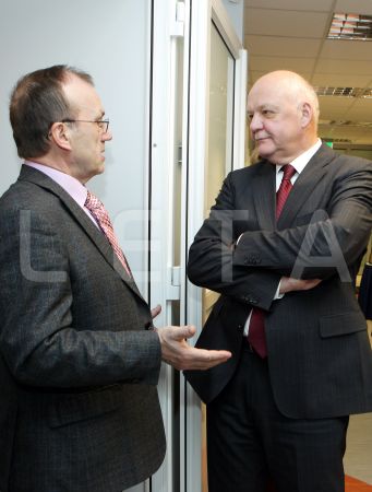 Latvijas Universitātes asociētais profesors Igors Aksiks (no kreisās) ...