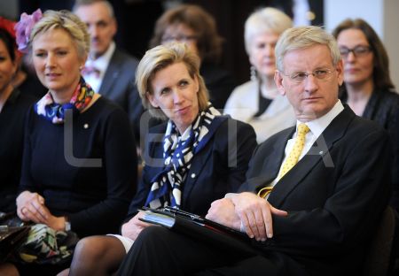 Zviedrijas ārlietu ministrs Karls Bilts (no labās) piedalās Latvijas ...