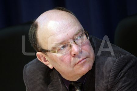 Latvijas Jūras akadēmijas rektors Jānis Bērziņš piedalās preses ...