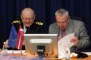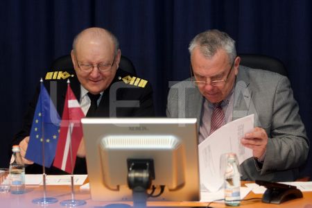Latvijas Jūras akadēmijas rektors Jānis Bērziņš (no kreisās) un ...