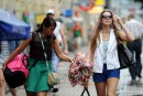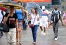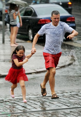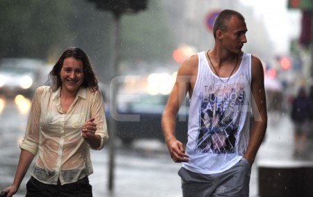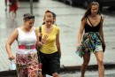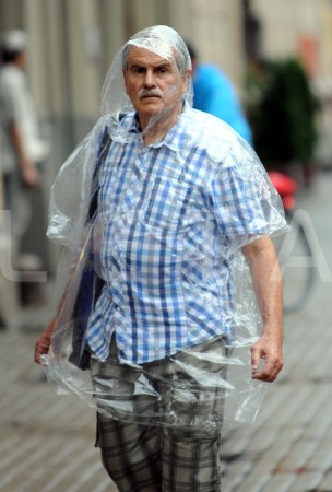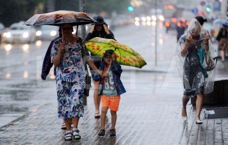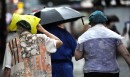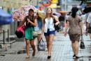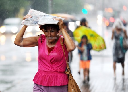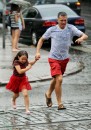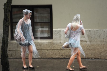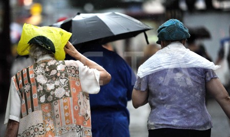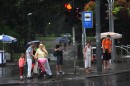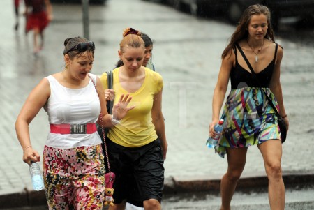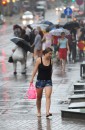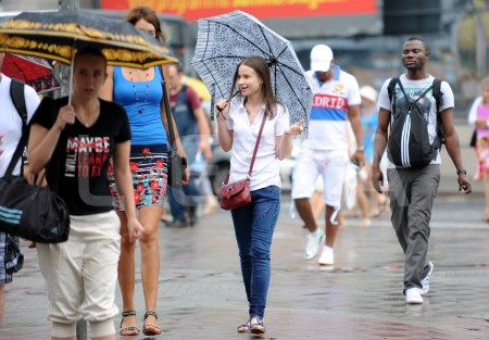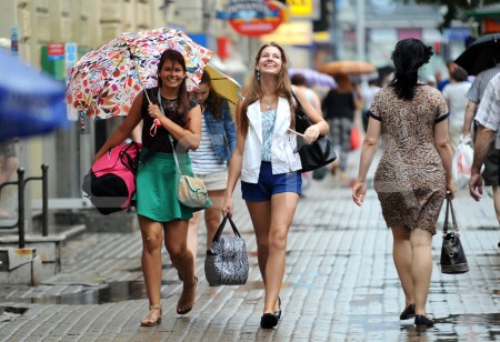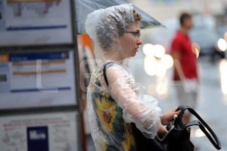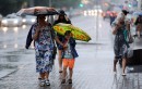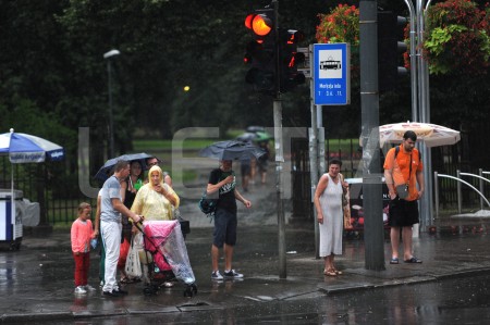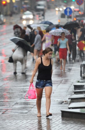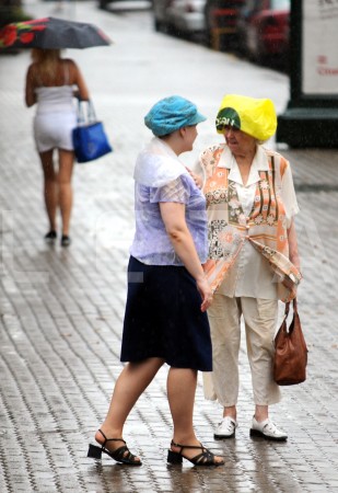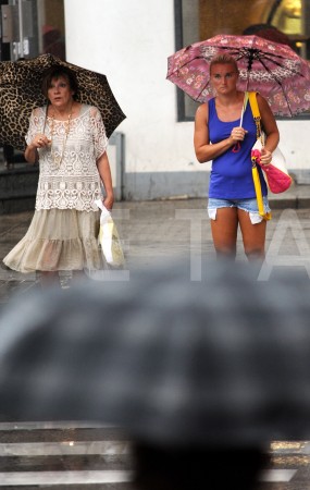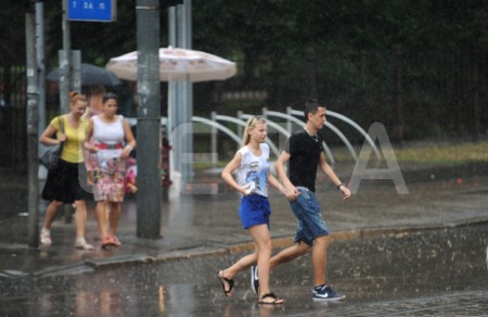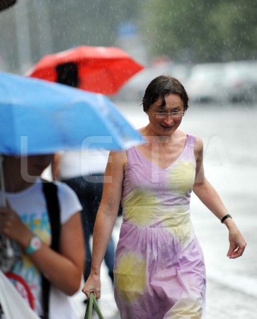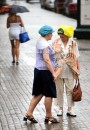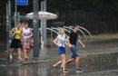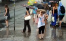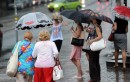 Cilvēki lietus laikā.