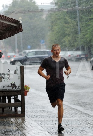 Vīrietis lietus laikā.
