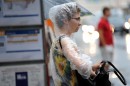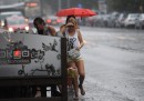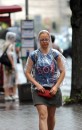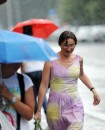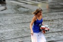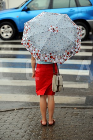Sieviete lietus laikā.