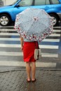 Sieviete ar lietussargu.
