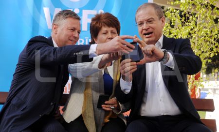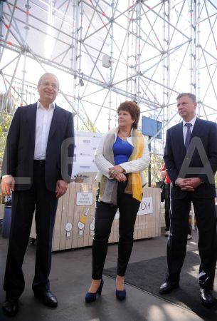 Rīgas domes priekšsēdētaja vietnieks Andris Ameriks (centrā) stāda ...