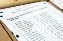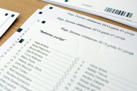 Pašvaldību vēlēšanu biļeteni iecirknī Nr.3 Rīgas valsts 1.ģimnāzijā.