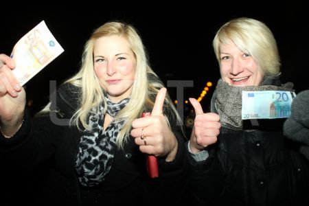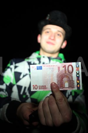 Jauniete ar eiro banknotēm pēc Latvijas pievienošanās eirozonai.